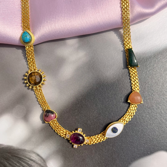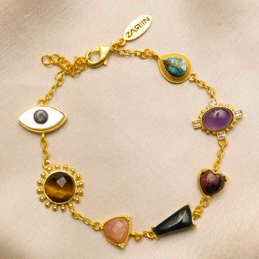 7 Gemstones Chakra Balancing Bracelet, In Gold For Men