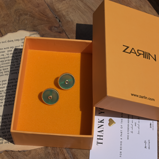 Modern Begum Green Onyx Stud Earrings