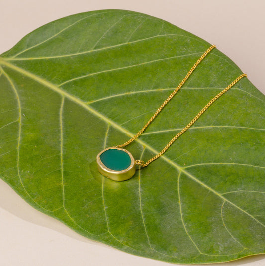 A Touch of Green Chalcedony Stone Gold Necklace