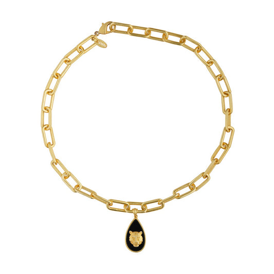 Tigris Charm Tiger Link Necklace with Malachite