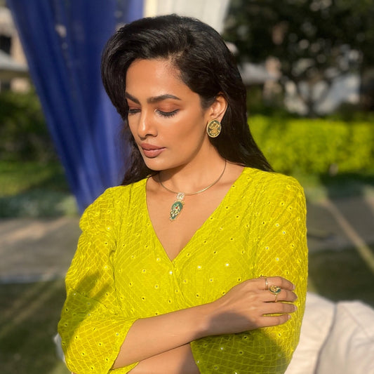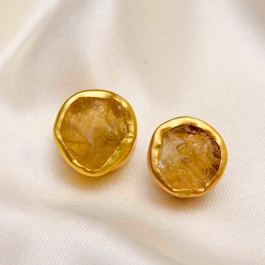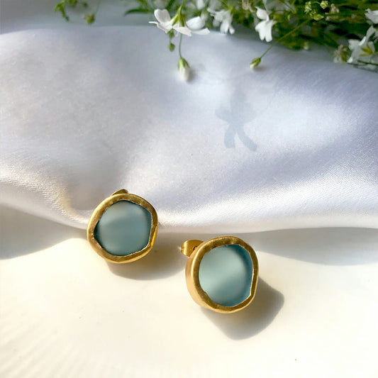 The Spirited Gold Stud Earrings with Green Chalcedony