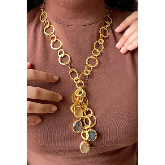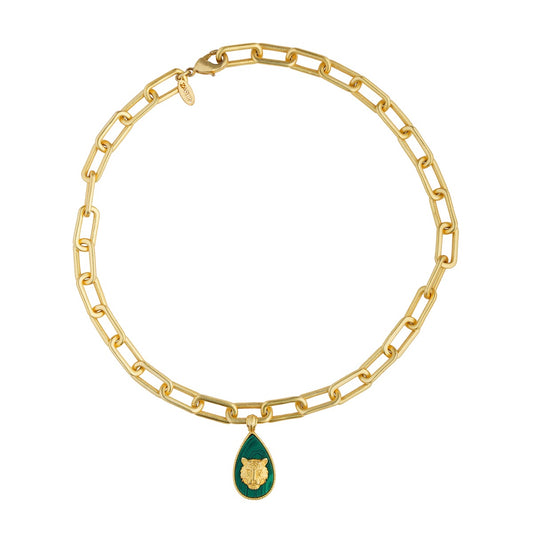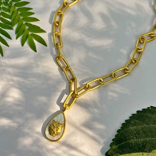 Tigris Charm Tiger Link Necklace with Mother of Pearl