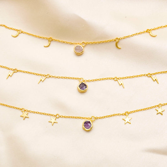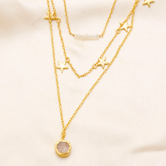 Love Light & Lightening Amethyst & Rose Quartz Three-Layered Necklace