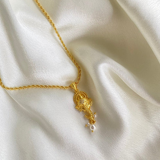 Divine Face Ganesh Pendant Necklace with Pearls and Cubic Zircons