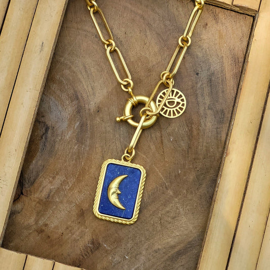 Virgo Zodiac Tablet Reversible Necklace with Lapis Lazuli