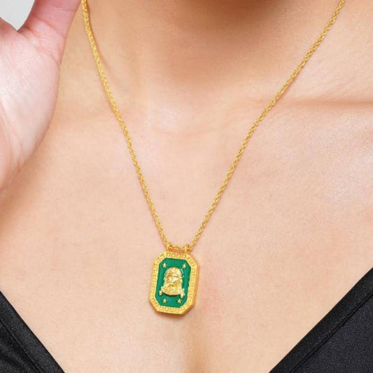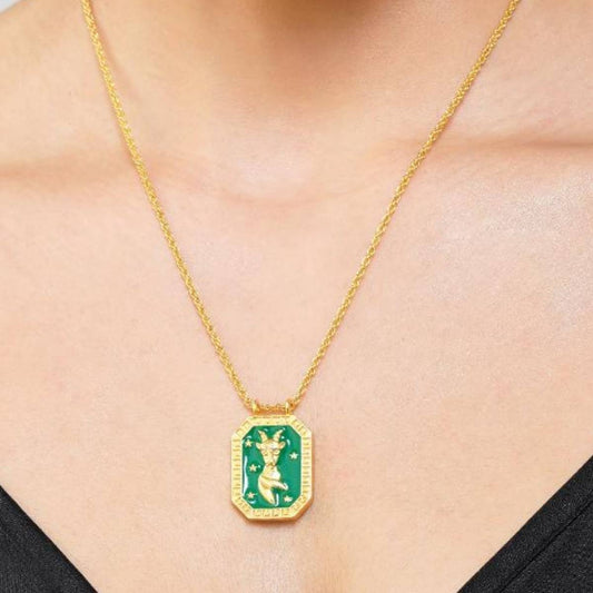 Taurus Zodiac Tablet Reversible Necklace with Chrysoprase
