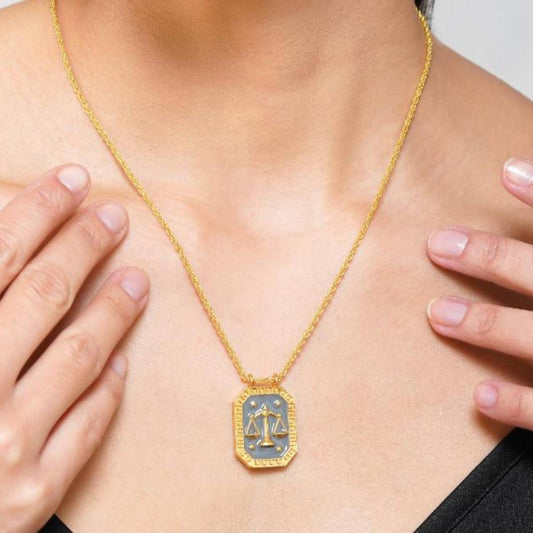 Libra Zodiac Tablet Reversible Necklace with Opal