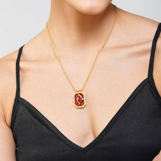 Capricorn Zodiac Tablet Reversible Necklace with Garnet