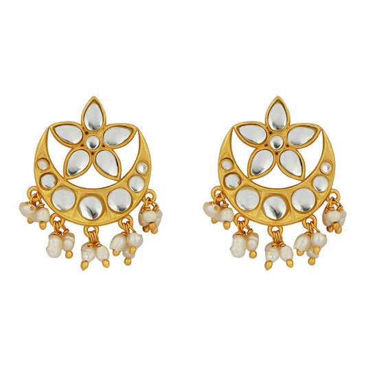 Chaand Phool Stud Earrings with Mirror Polki and Pearls