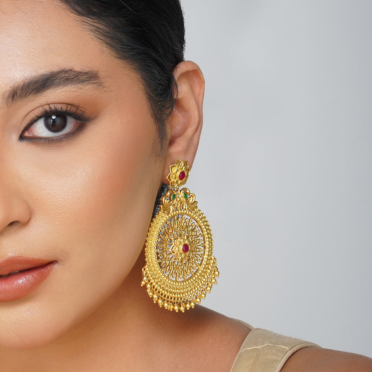Festive Indian looks often feel incomplete without a pair of big, bold earrings. This pair will add that oomph and dress you up by framing your face with its beauty.