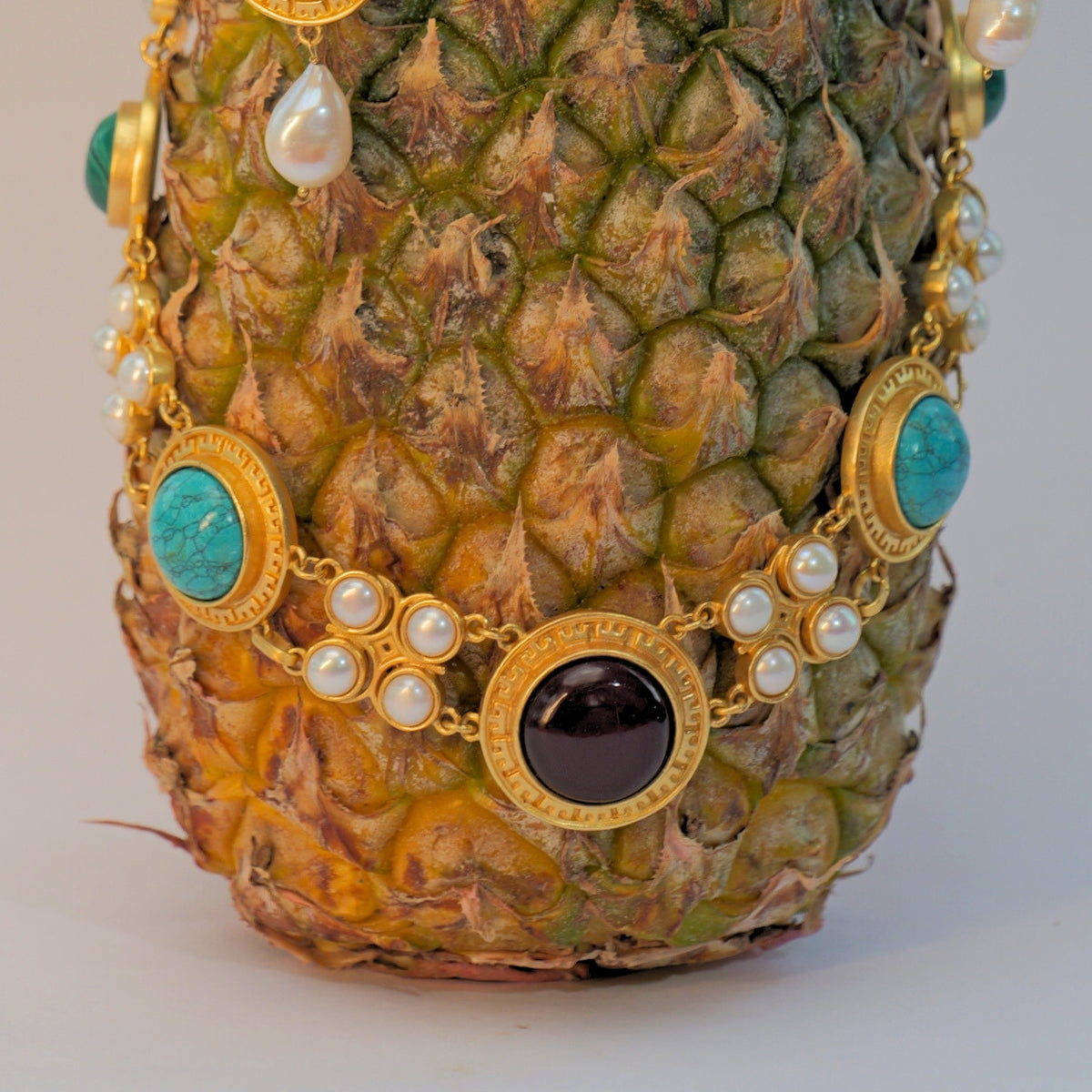 Stone Type Turquoise, Malachite, Garnet and Pearl