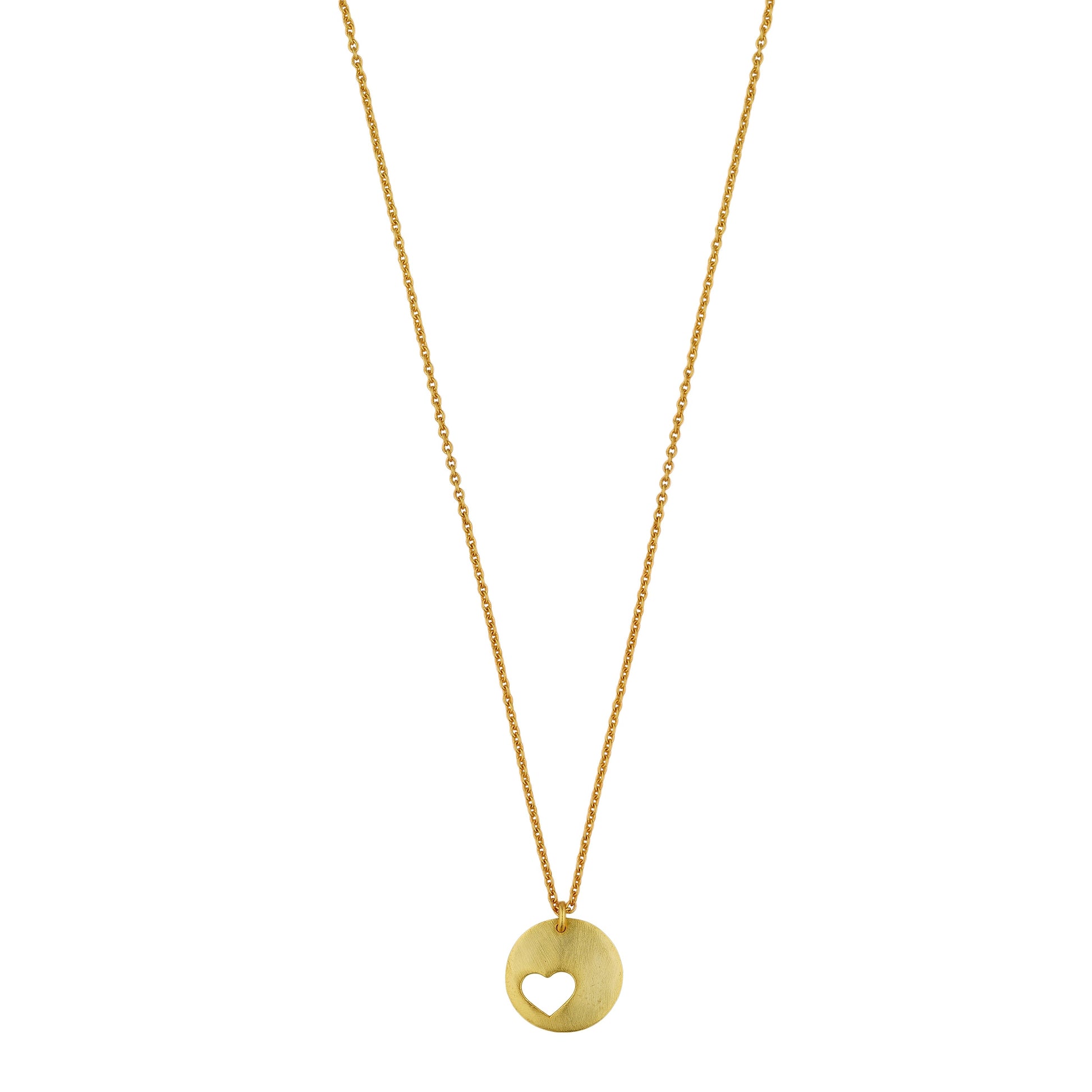This is a 22kt gold plated necklace with a disc pendant detailed with heart shape cutout. A simple everyday necklace to keep a piece of your heart always with you! Depictive of the true love shared between mother and her child, the necklace makes a thoughtful mother's day gift for your mum!