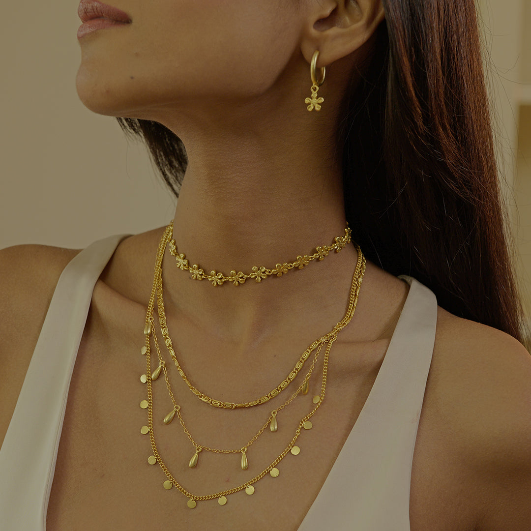 Indulge in the classic aesthetics of 22kt gold plated, all gold jewelry. Forever classics that will always continue to shine and add value to your look.