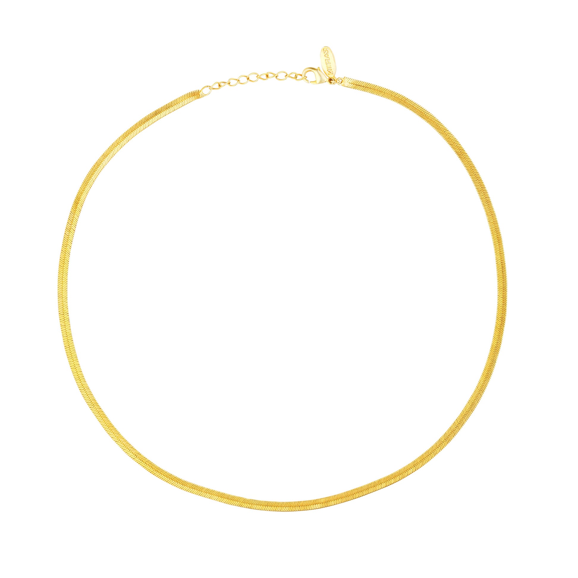 This is a stylish and minimal 22kt gold dipped snake chain. It's an easy going chain that beautifully conforms to the contours of your collar bones, creating a flattering look. Choose this chain if you are aiming for a modern look for your coin pendant.