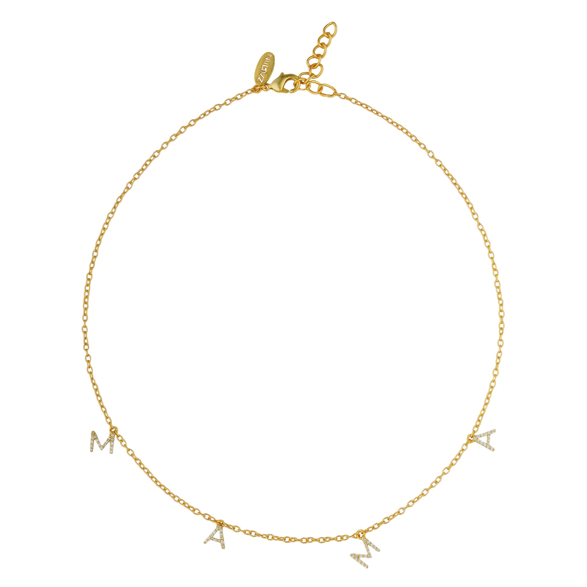 This is a 22kt gold plated letter necklace with MAMA letters studded with Cubic Zircons. It's a beautiful necklace that celebrates the role of a Mama and the journey of motherhood. Wear it as a badge fo pride and love. The necklace makes the perfect Mother's Day gift for Mums!