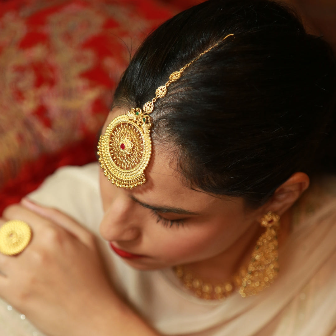 The jewellery reimagines and celebrates traditional Indian jewellery and its variety by fusing various crafting techniques. The result is a captivating. Each piece is a blend of antique temple jewellery, embossing techniques and filigree craft inspired from different parts of India.