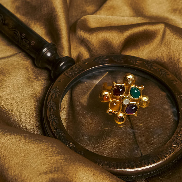 Traditional Navratan jewellery presented in the form of a stylish ring for the modern woman who uses traditional knowledge to her benefit.