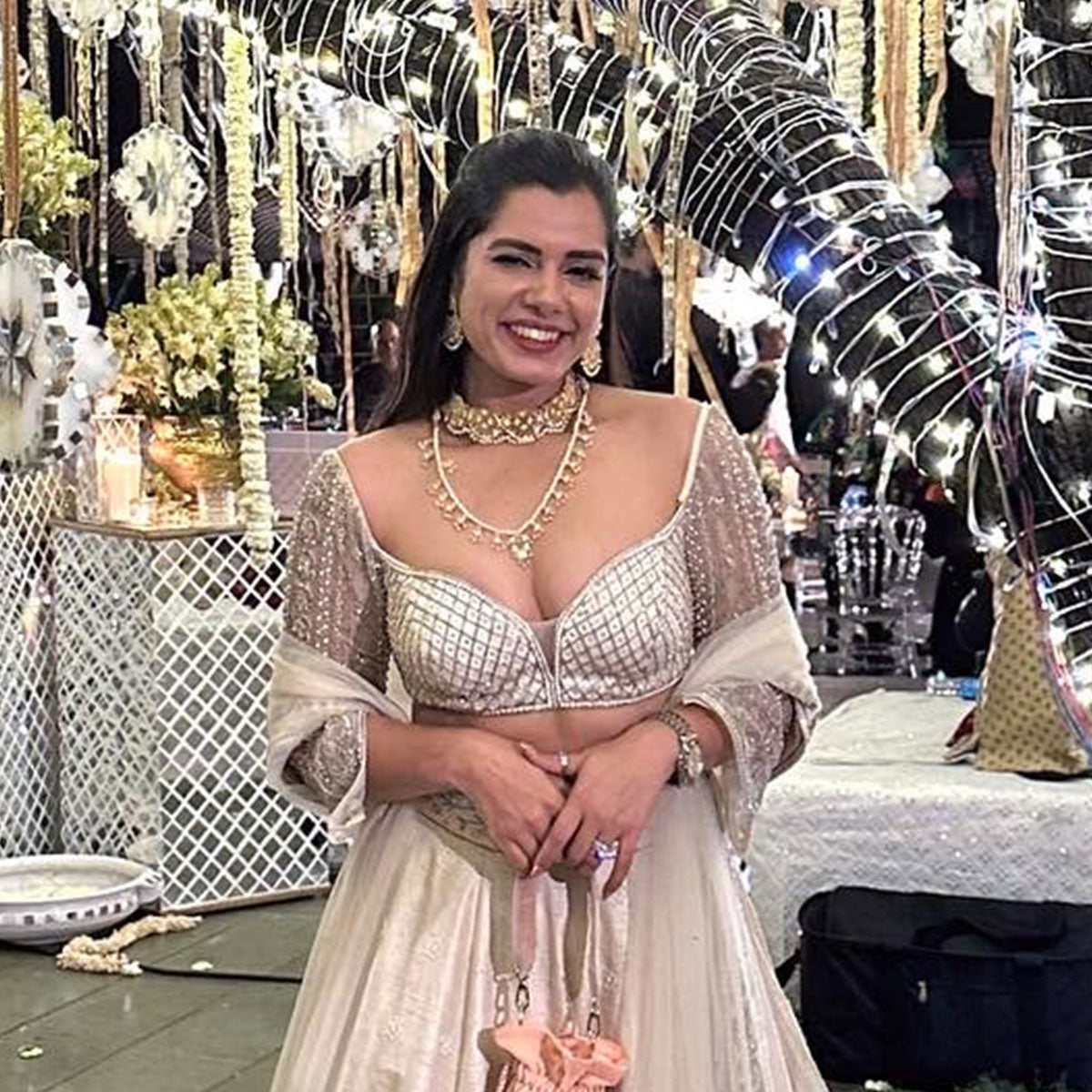 STYLE NOTES: Chaand baalis are the perfect way to lend a traditional touch to your outfit. Pair them with layered necklaces for a maharani like royal approach. The combination of White and Gold makes the piece highly wearable and easy to style. A stunning finishing touch to your festive ensembles.