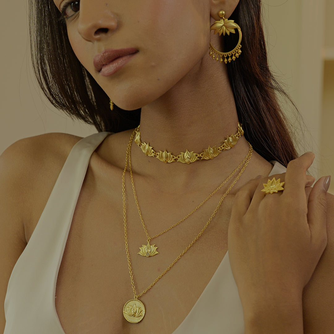 Indulge in the classic aesthetics of 22kt gold plated, all gold jewelry. Forever classics that will always continue to shine and add value to your look.